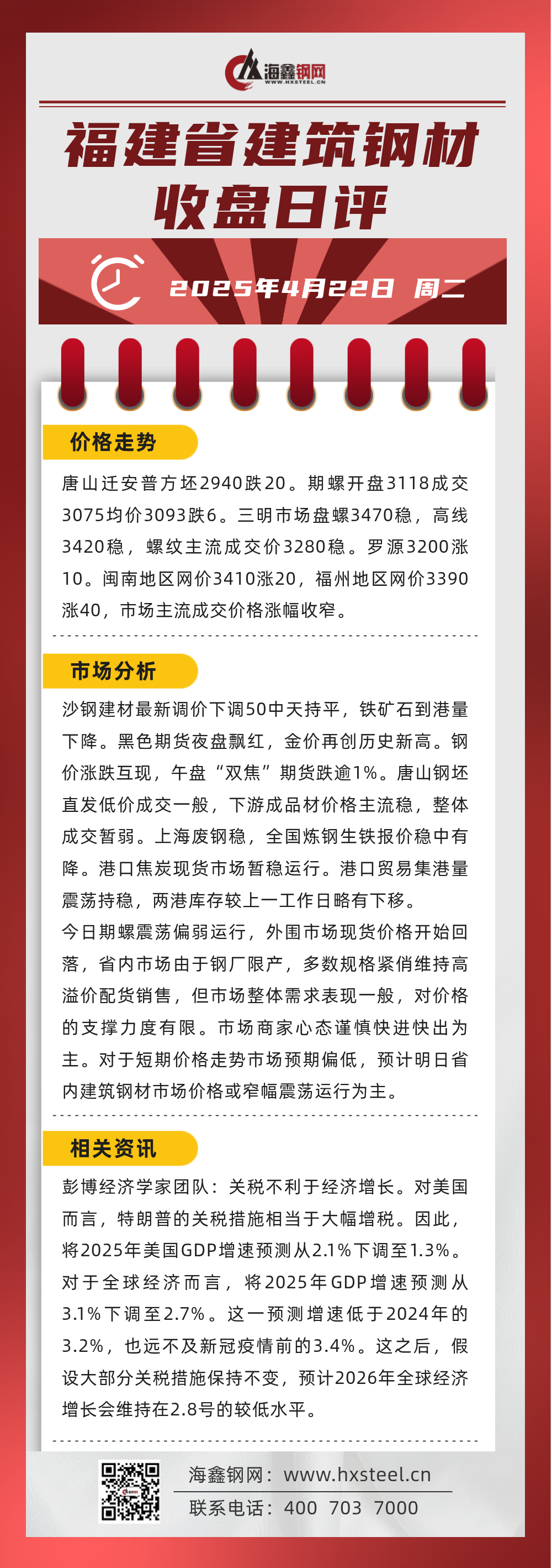 4月22日福建省內(nèi)建筑鋼材收盤日評