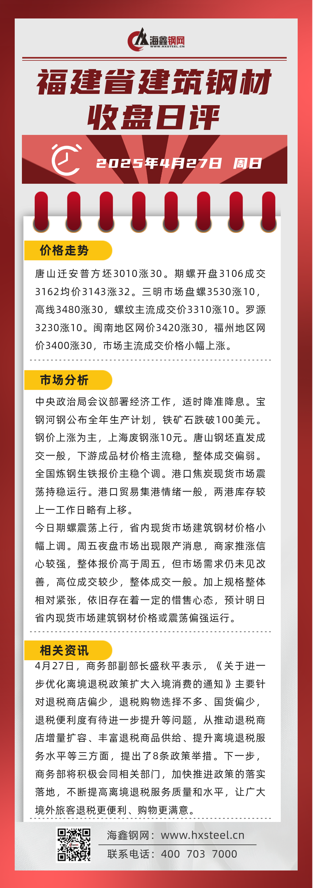 4月27日福建省內(nèi)建筑鋼材收盤日評(píng)