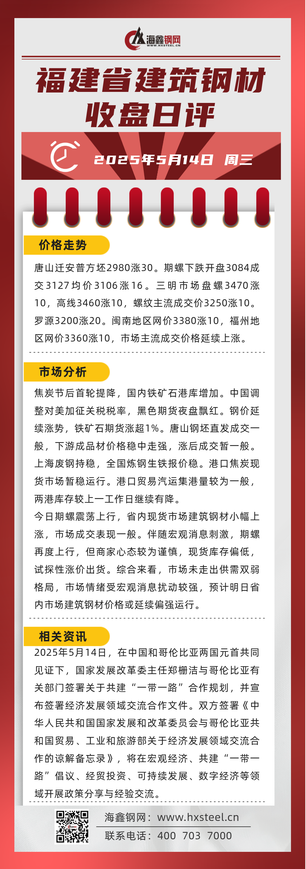 5月14日福建省內建筑鋼材收盤日評
