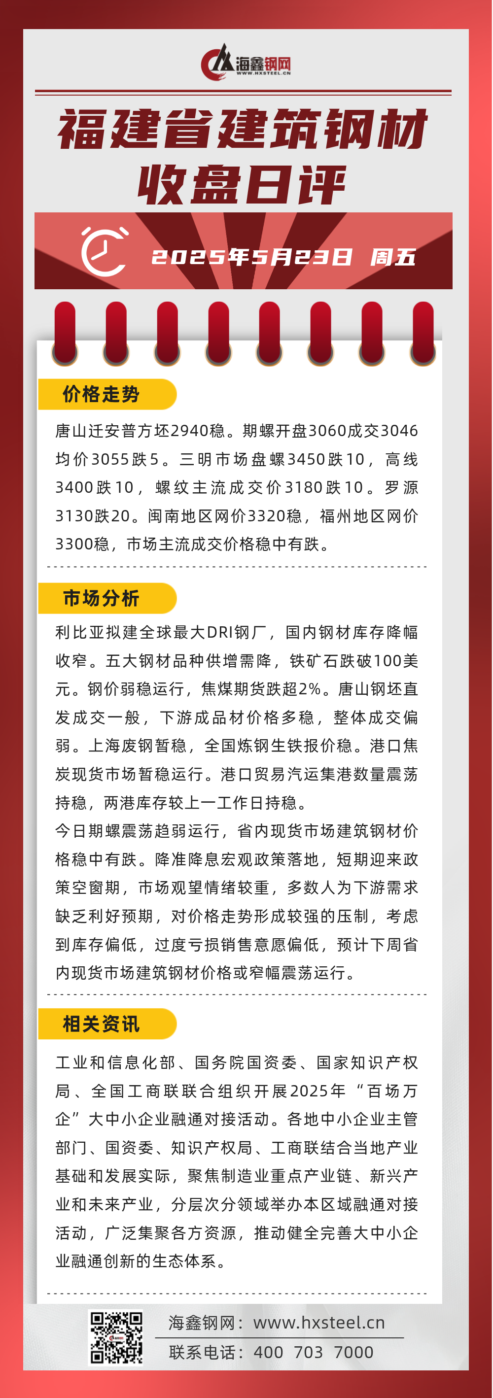 5月23日福建省內(nèi)建筑鋼材收盤日評(píng)