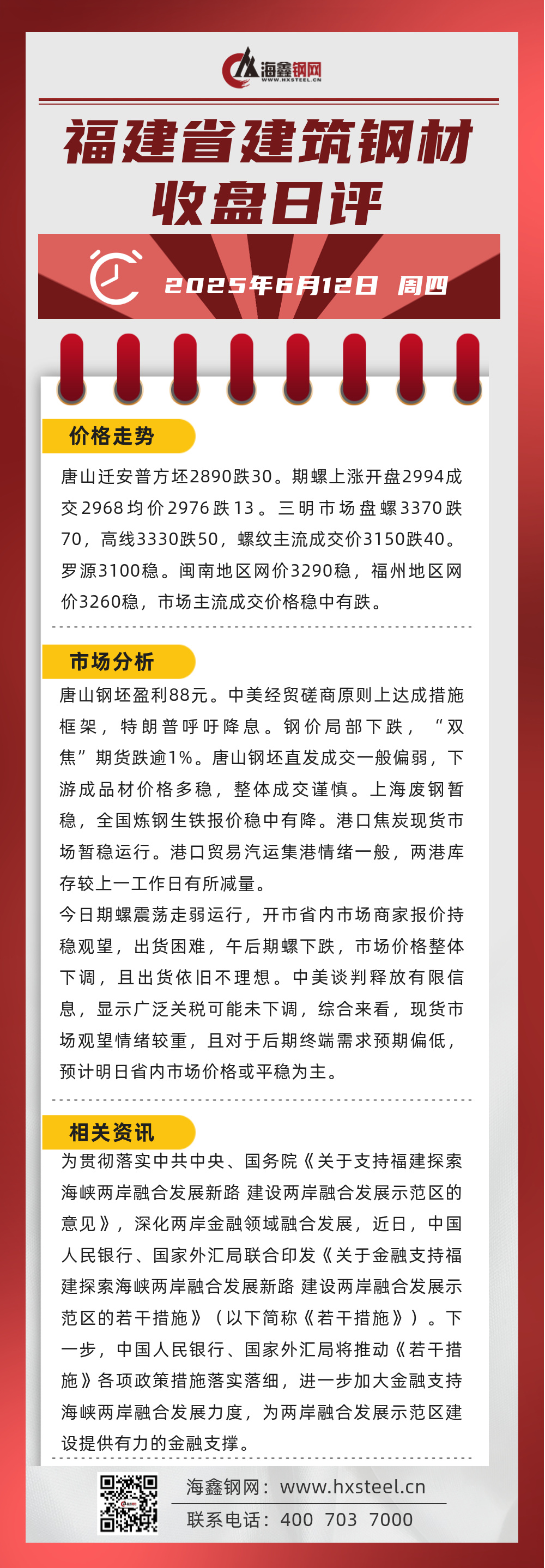 6月12日福建省內(nèi)建筑鋼材收盤日評