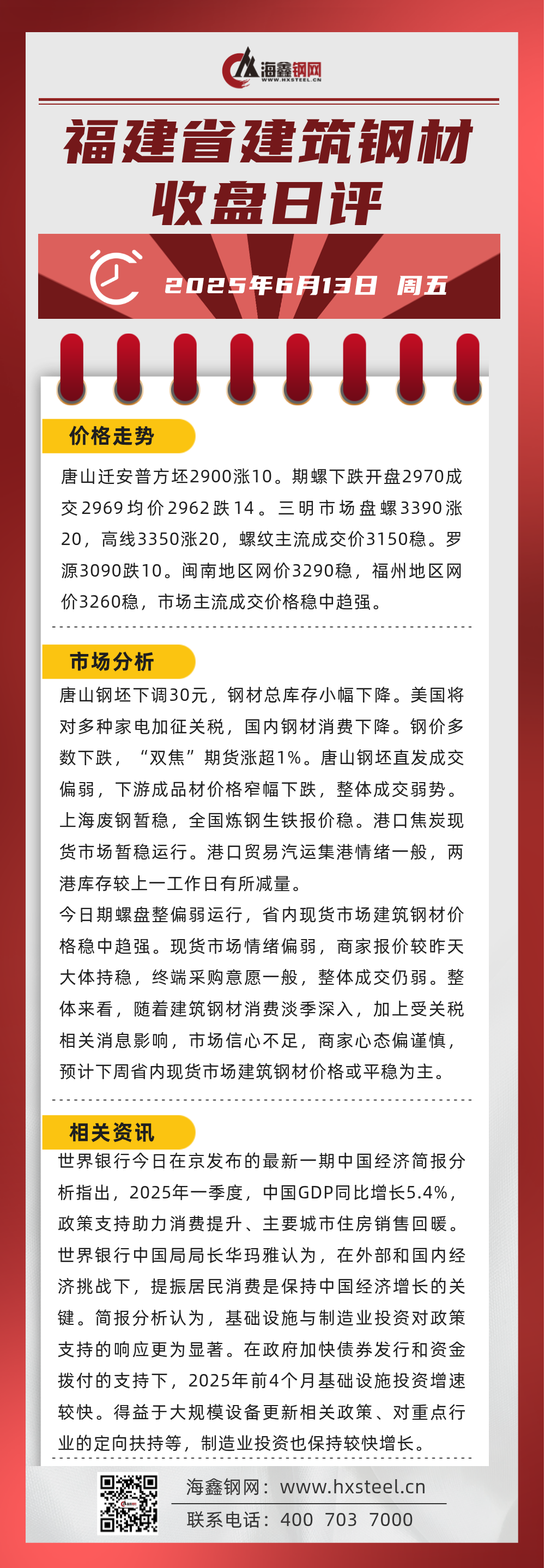 6月13日福建省內(nèi)建筑鋼材收盤日評