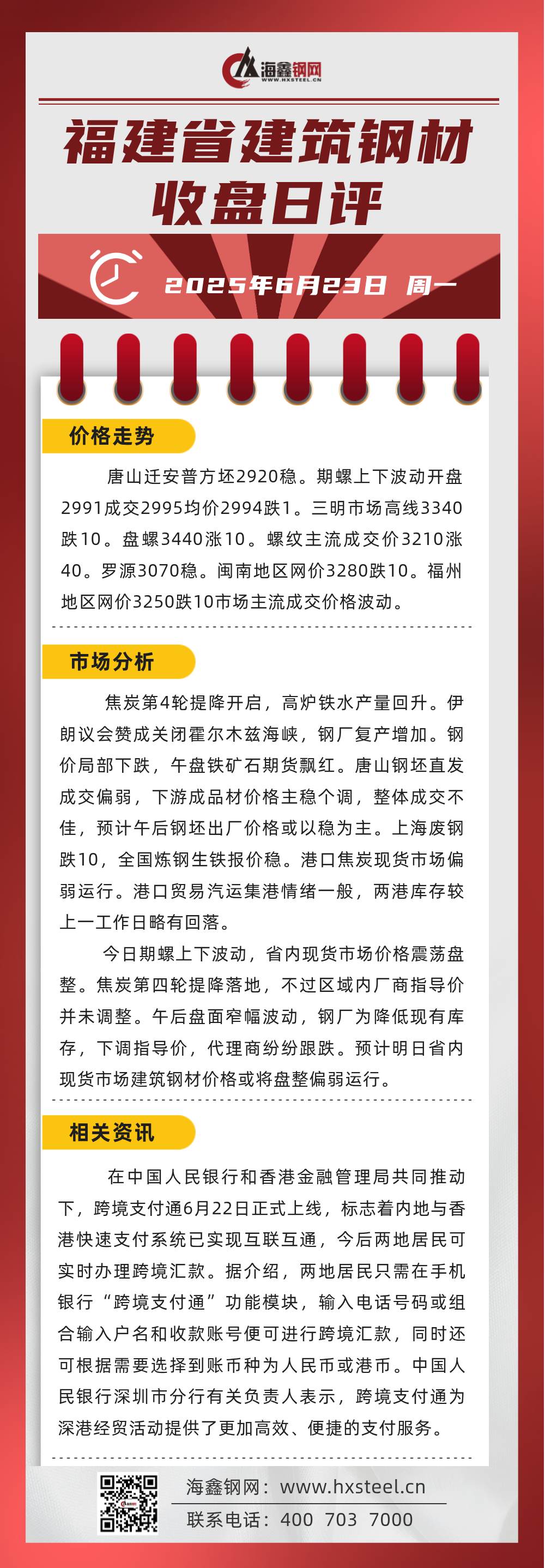 6月23日福建省內(nèi)建筑鋼材收盤日評(píng)