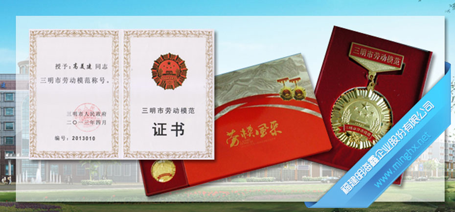 福建明海鑫企業股份有限公司董事長高美建同志獲三明市勞動模范稱號