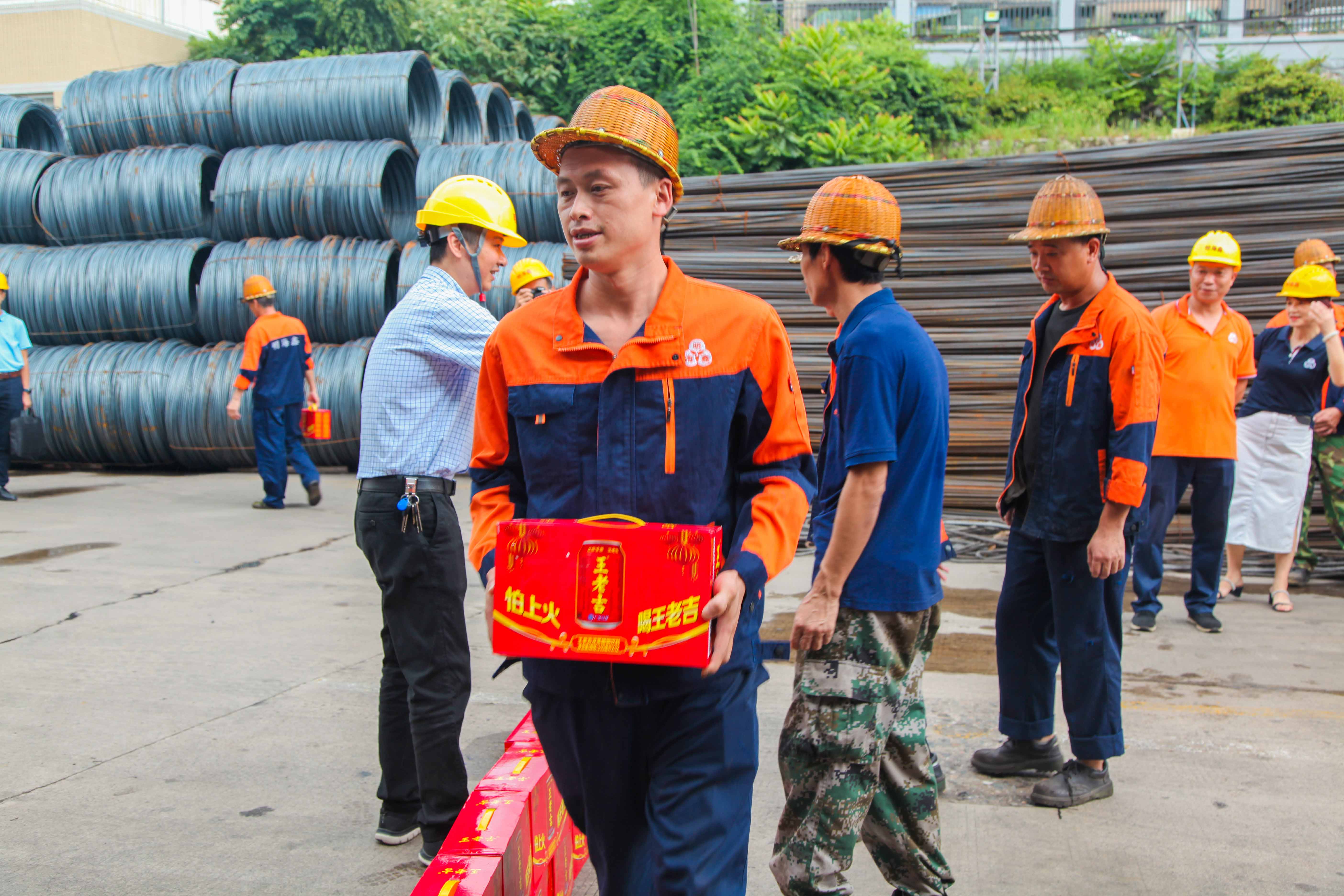 在活動(dòng)現(xiàn)場(chǎng),區(qū)總工會(huì)主席陳一龍將涼茶送到每一個(gè)工人的手中,并為我司送來3000元防暑降溫慰問金。同時(shí)為我司在高溫天氣下堅(jiān)守崗位的一線職工送去關(guān)懷,叮囑他們?cè)诠ぷ髦幸⒁鈩谝萁Y(jié)合,把生命安全放在第一位。并叮囑他們夏季炎熱要保重身體,做好防暑降溫措施,同時(shí)抓好安全生產(chǎn)工作。